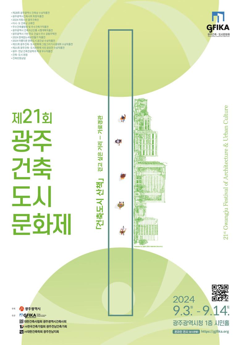 제21회 광주건축도시문화제는 ‘건축도시 산책: 걷고 싶은 거리-가로경관’을 주제로 진행된다. 주제는 광주시에서 추진 중인 대중교통·자전거·보행자 중심의 ‘걷고 싶은 도시’의 조성계획에 맞춰 시민 누구나 15분 이내로 문화·복지·여가 시설 등에 접근할 수 있는 도시계획의 의미가 반영됐다.