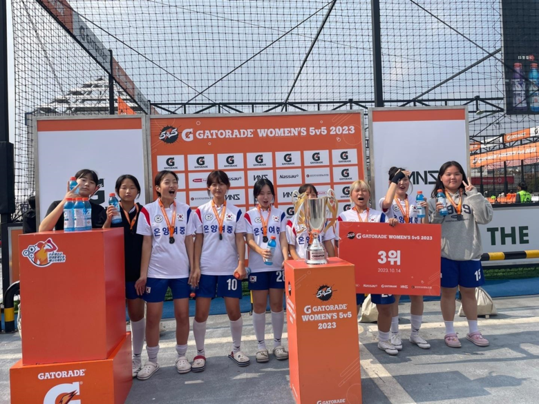[아산시 세계타임즈=백택기 기자] 온양여자중학교(교장 남정옥) 학교스포츠 클럽 풋살팀이 4일 경기도 시흥 HM풋살파크 시흥점에서 열린 2023 게토레이 5대5 우먼스 챔피언쉽에 풋살 2개팀이 참가하여 모비딕클럽이 전국 3위를 차지했다.