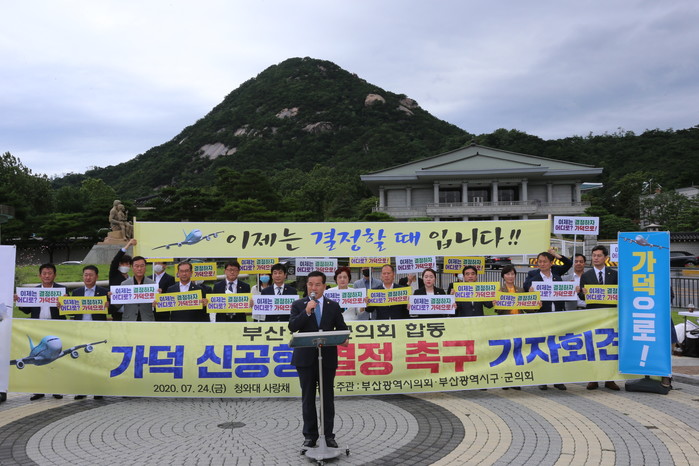 이날 합동 기자회견은 국무총리실의 김해신공항 검증 결과 발표가 임박한 가운데 객관적이고 공정한 검증결과를 조속히 발표할 것을 촉구하고 가덕신공항 건설의 당위성을 전 국민에게 널리 알리기 위해 마련됐다. 신상해 부산시의회 의장과 김진 구·군의회 대표를 비롯해 시의회 의장단, 구·군의회 의장 등 30여 명이 참석해 건의문을 낭독하고 종이비행기 날리기 퍼포먼스를 펼치며 가덕신공항에 대한 염원을 알렸다.