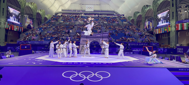 파리 그랑팔레에서 열린 세계태권도연맹 시범단의 공연이 올림픽 경기만큼이나 뜨거운 관심을 받으며 한국의 전통 문화와 태권도의 매력을 전 세계에 알렸다.