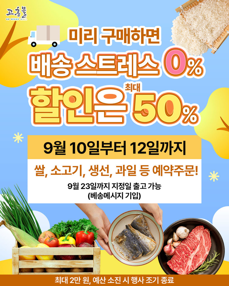 이번 사전 예약전에서는 최대 50% 할인(할인 한도 2만 원) 혜택이 적용된다. 품목별 할인율은 다르며, 예산 소진 시 조기 종료될 수 있다. 소비자는 주문 단계에서 ‘배송 메시지’ 부분에 희망 출고일을 기재하면 해당 일정에 맞춰 순차적으로 출고된다.