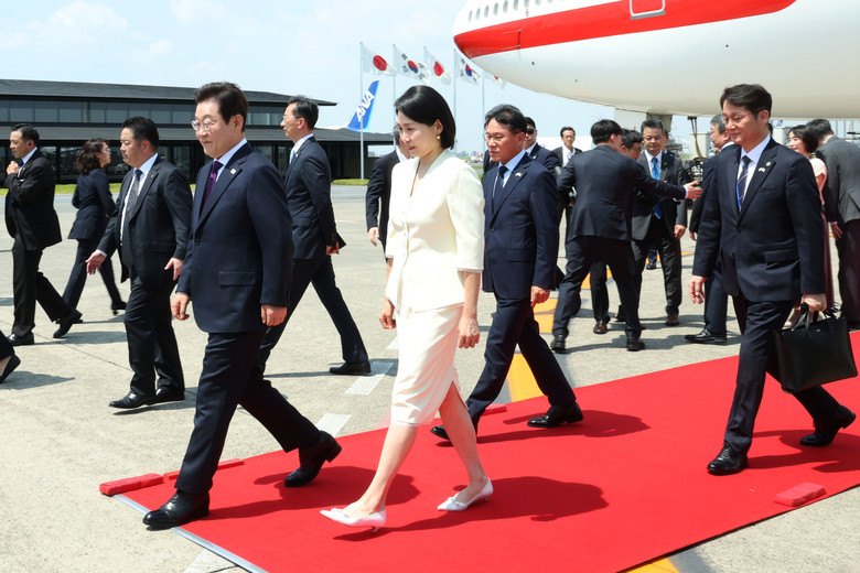 [세계타임즈 = 진정화 기자] 1박2일 일정으로 일본을 방문하는 이재명 대통령과 김혜경 여사가 23일 일본 도쿄 하네다공항에 도착하고 있다. 2025.8.23