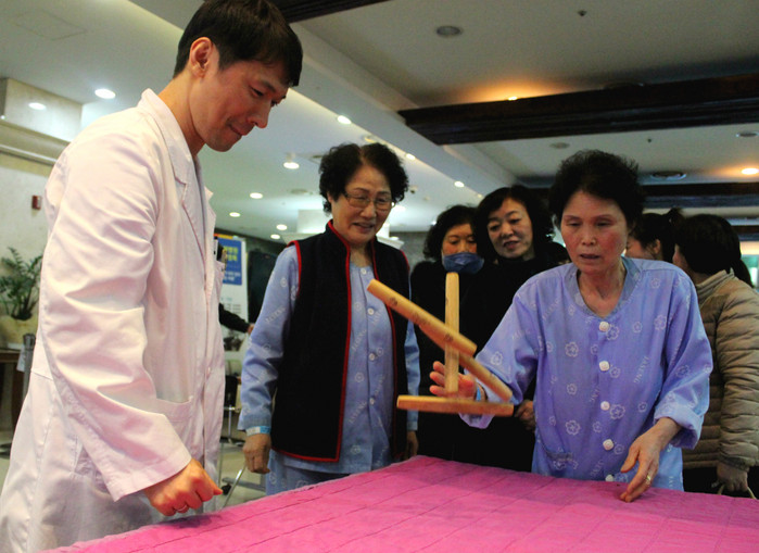 | 대전자생한방병원 환자들이 게임을 즐기고 있다. |