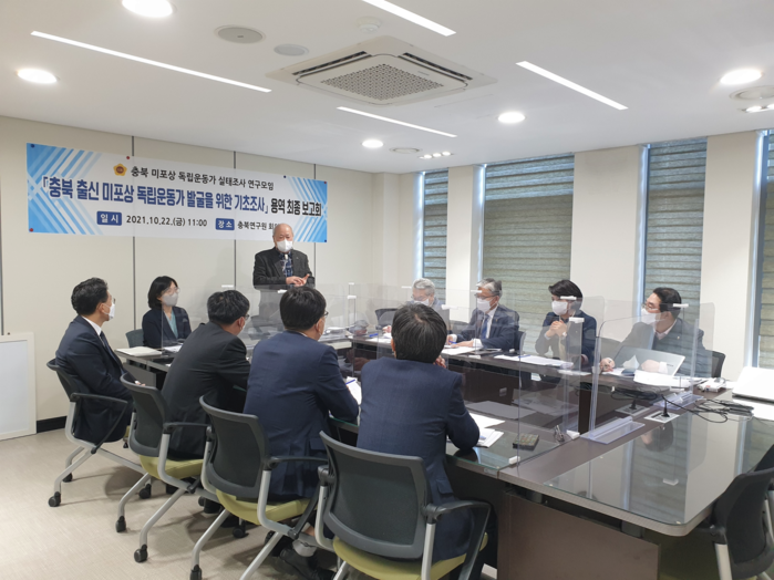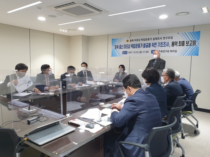 [충북=세계타임즈 이현진 기자] 충북도의회 의원연구단체 ‘충북 미포상 독립운동가 실태조사 연구모임’(대표의원 송미애)은 22일 충북연구원 회의실 ‘충북 출신 미포상 독립운동가 발굴 기초조사’ 용역 최종보고회를 개최했다.