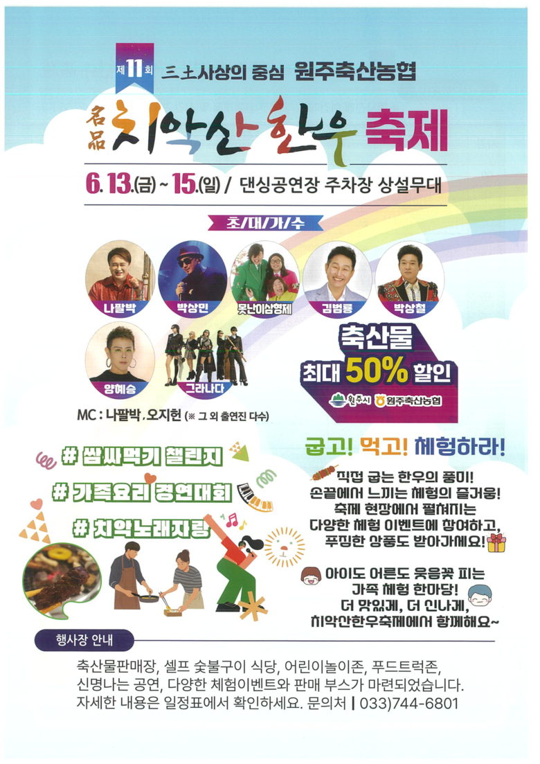 각 행사장에서는 △ 한우 부위별 최대 50% 할인 판매, △ 경품 이벤트, △ 초대가수 공연, △ 어린이 놀이존 등 남녀노소 모두 즐길 수 있는 다양한 프로그램이 마련된다.