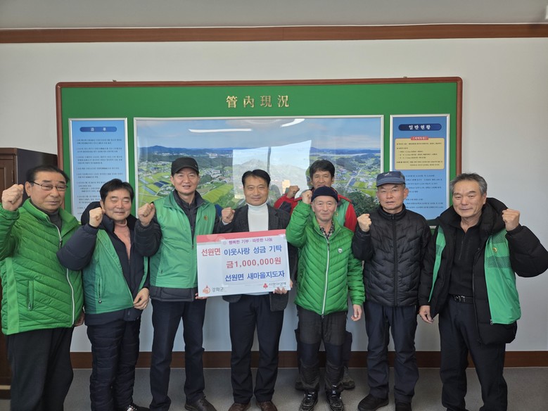 이정실 선원면장도 “지속적인 나눔을 통해 지역사회에 모범을 보여주고 있는 새마을지도자협의회에 깊이 감사드리며, 기탁 해 주신 성금은 도움이 꼭 필요한 이웃들에게 잘 전달하겠다”고 화답했다.