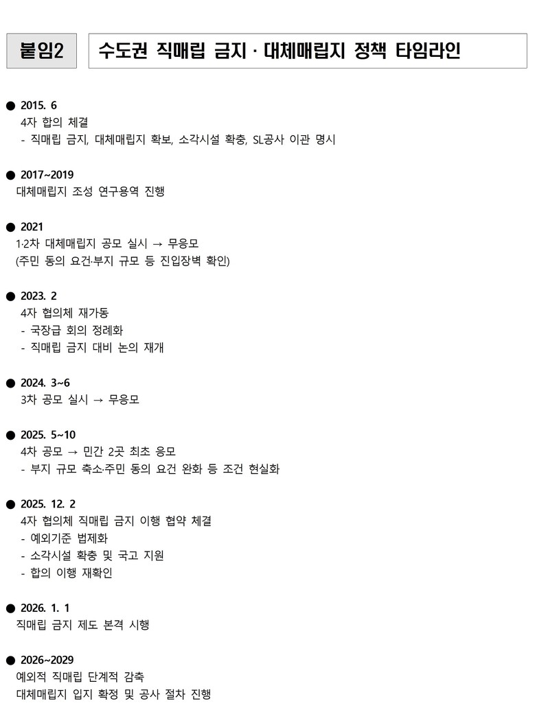직매립 금지 시행을 위한 준비도 부족했다. 직매립 금지는 2015년 합의된 원칙이지만, 실제로 2026년 시행을 앞두고 소각시설 부족과 처리 용량 문제 등이 논란이 되었다.