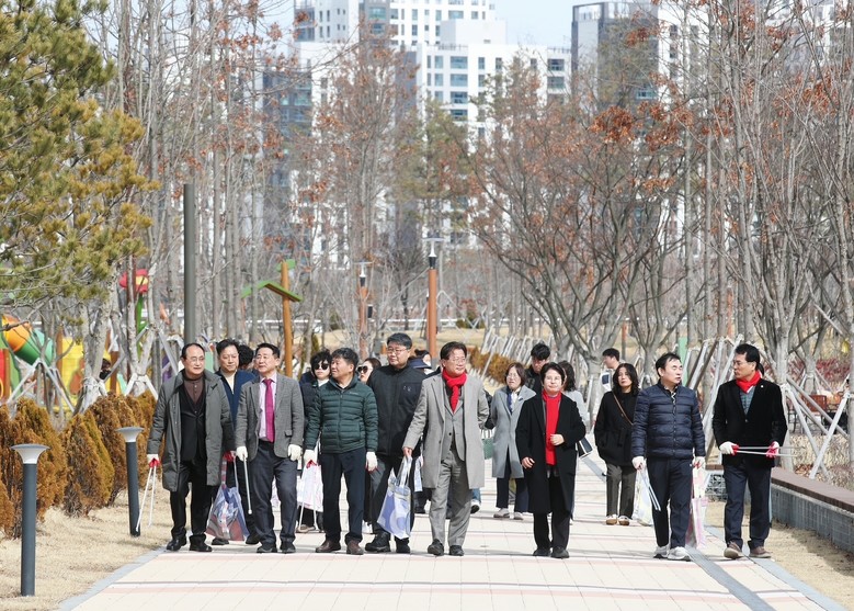 이후 갑천 생태호수공원으로 이동해, 자생단체 회원 및 주민 60여 명과 함께 새봄맞이 플로깅(조깅하며 쓰레기 줍기) 행사를 진행했다.