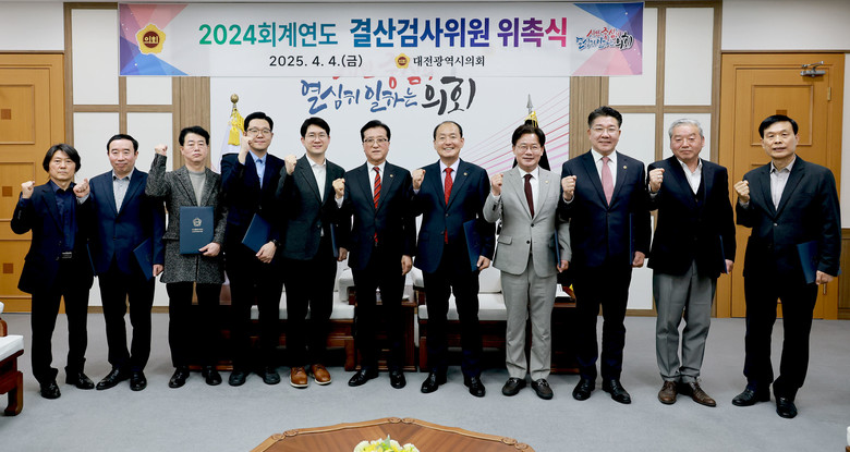 [대전 세계타임즈=이채봉 기자] 대전시의회(의장 조원휘)는 4일 의장 접견실에서, 지난 제285회 임시회 제1차 본회의에서 선임한 2024회계연도 결산검사위원에게 위촉장을 수여했다.
