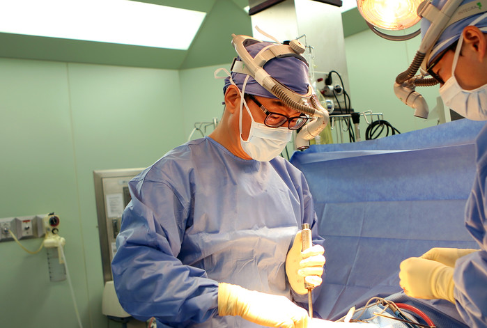 | ▲신경외과 조대진 교수가 수술을 하고 있다. |