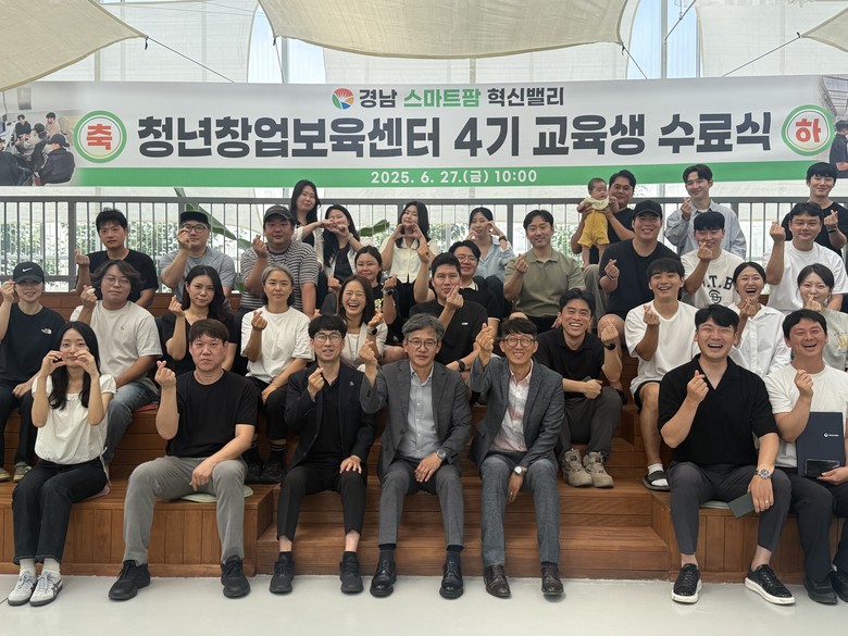 이날 행사에는 경남 스마트팜혁신밸리 청년창업보육센터 관계자, 선·후배 교육생 등이 함께 참석해 4기 교육생들의 수료를 축하하고 새로운 출발을 응원했다.