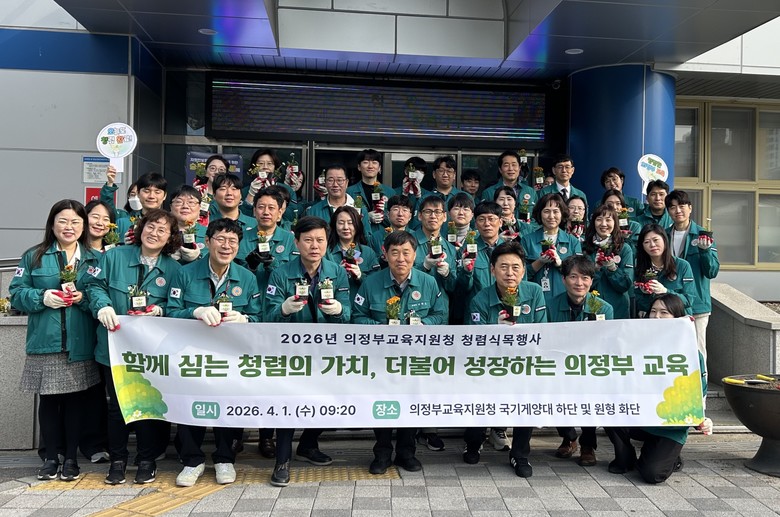 [의정부시 세계타임즈=송민수 기자] 의정부교육지원청(교육장 서권호)은 식목일을 맞이하여 교육공동체 내 청렴 문화를 확산하고, 청렴을 ‘심고 가꾸는 가치’로 내면화하기 위한 ‘2026 청렴 식목 행사’를 진행했다.