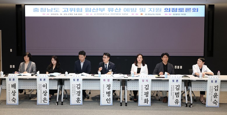 충남도의회는 25일 순천향대학교 천안병원 1강당에서 ‘충청남도 고위험 임산부 유산 예방 및 지원을 위한 의정토론회’를 개최했다.