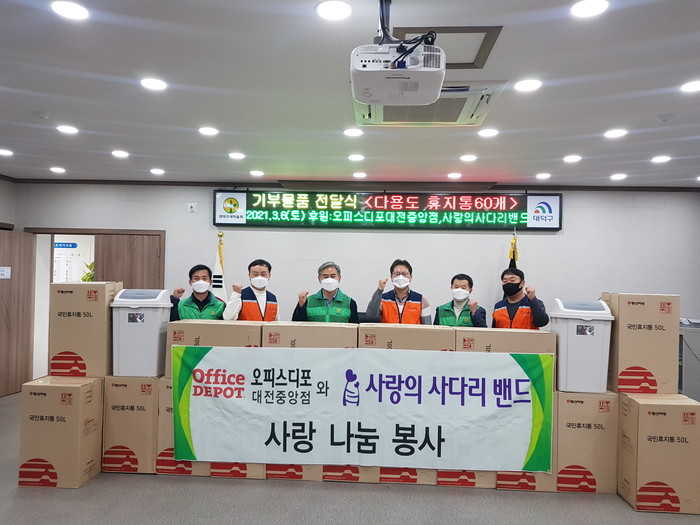 국민휴지통을 후원한 오피스디포 송민섭 대표는 “코로나19로 힘든 시기에도 대덕구지역을 위해서 열심히 봉사하고 있는 대덕구새마을회에 감사를 전한다,”고 말했다.