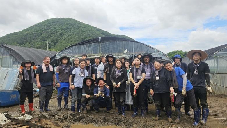 이날 복구 작업에는 농수산해양위원회(위원장 이연희)와 도의회 5개 담당관실(총무‧의사‧홍보‧입법‧예산) 직원 40여 명이 참여했으며, 집중호우로 물에 잠긴 깻잎 하우스를 정리하고 토사를 제거하는 등 구슬땀을 흘렸다. 또 충남도 남부출장소 직원 10여 명도 함께 힘을 보탰다.
