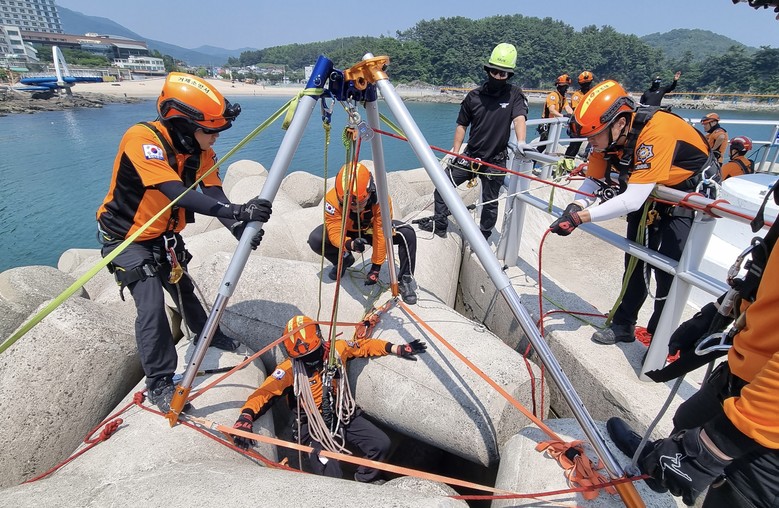 또한, 실제 테트라포트(방파제 구조물) 지역에서의 구조상황을 가정해 복잡한 지형에서의 인명구조 훈련을 실시하고, 차량을 수중에 투입해 침수사고와 유사한 환경을 조성한 뒤 수중 수색과 구조 절차를 반복 숙달하는 등 실전 대응능력 향상에 주력했다.
