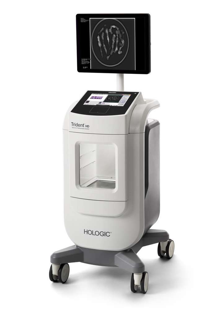 ‘트라이덴트 HD’는 유방암 수술 중 절제한 조직의 절제연(조직 절제범위 혹은 조직 절제마진)을 수술실 안에서 간편하게 확인할 수 있는 X선 촬영장치다.