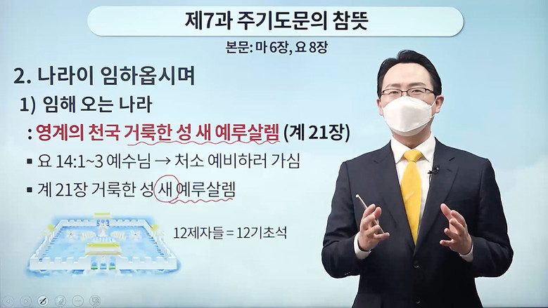 | ▲25일 신천지 공식 유튜브 채널을 통해 시몬지파 서대문교회 이정수 담임강사의 ‘주기도문의 참 뜻’을 주제로 한 ‘구약 신약 장별 계시 증거 세미나’ 제7과 강의가 스트리밍되고 있다. |