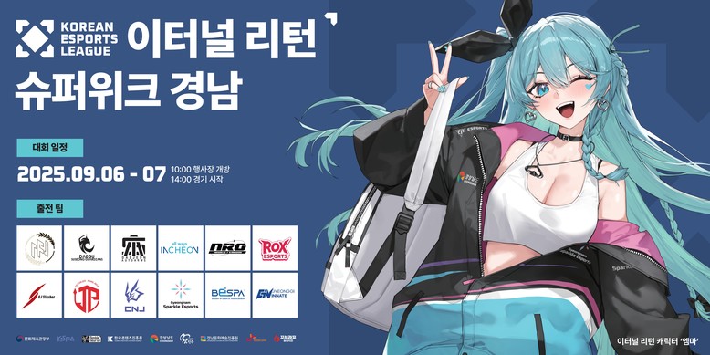 - 지난 2월 체결한 ‘경남 이스포츠 산업 활성화 협약’의 후속 조치 [세계타임즈=경남 최성룡 기자] 경상남도(도지사 박완수)와 경남문화예술진흥원(원장 김종부)는 오는 9월 6일~ 7일 양 일간 경남 이스포츠 경기장(진주 소재)에서『2025 대한민국 이스포츠 리그(KEL) 이터널리턴 수퍼워크 경남』를 개최한다고 밝혔다.