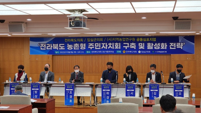 군의회는 최근 전라북도의회 의총회의실에서 (사)지역농업연구원, 전라북도의회와 함께 전라북도 농촌형 주민자치회 구축 및 활성화 전략 토론회를 개최했다고 7일 밝혔다.