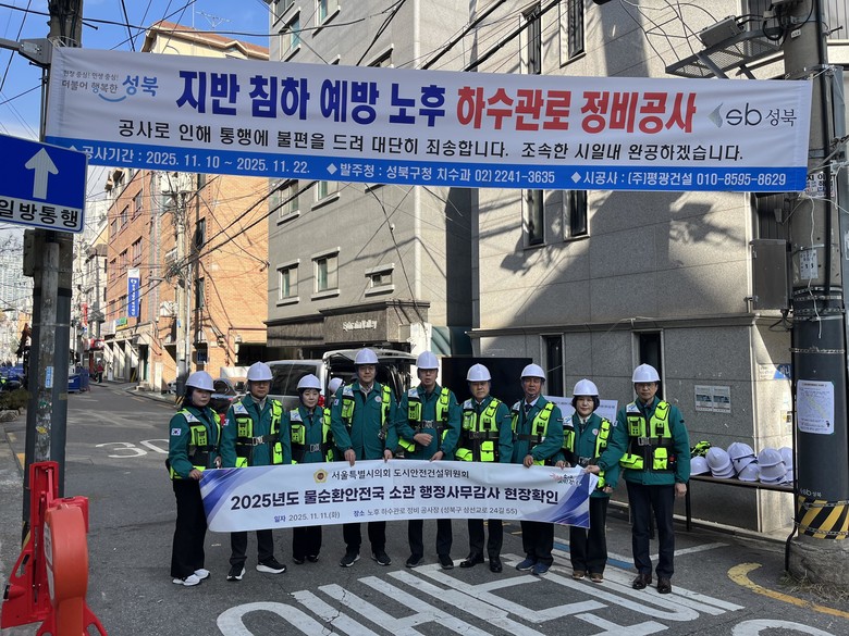 [서울 세계타임즈=이장성 기자] 서울특별시의회 도시안전건설위원회(위원장 강동길)는 11월 11일(화) 제333회 정례회 중 물순환안전국 소관 행정사무감사의 일환으로 성북구 삼선교로24길 55 일대 노후 하수관로 정비사업 현장을 방문하여 사업추진 현황과 지반침하 예방대책을 점검했다.