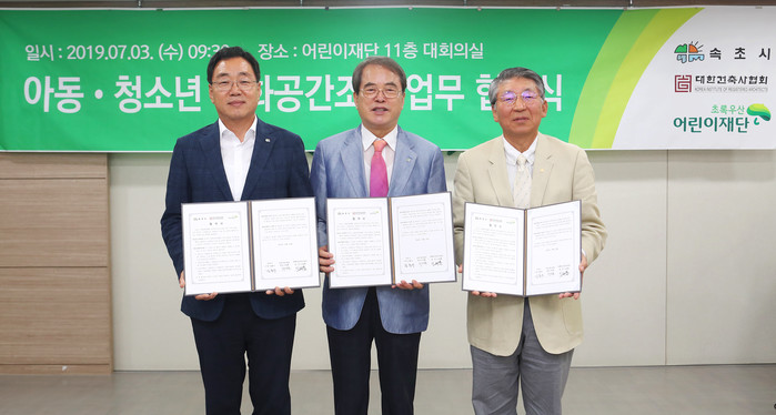 이번 협약은 지난 4월 발생한 강원산불로 인해 피해를 입은 지역내 아동들을 위한 아동·청소년 친화공간 조성을 위해 마련됐다. 어린이재단과 속초시, 대한건축사협회는 화재로 신체적, 심리적 위험에 노출된 아동들이심리적 외상을 회복하고 건강하게 성장하는 것을 지원하고자 올 연말 완공을 목표로 속초시에 아동·청소년 친화공간을 조성할 계획이다.