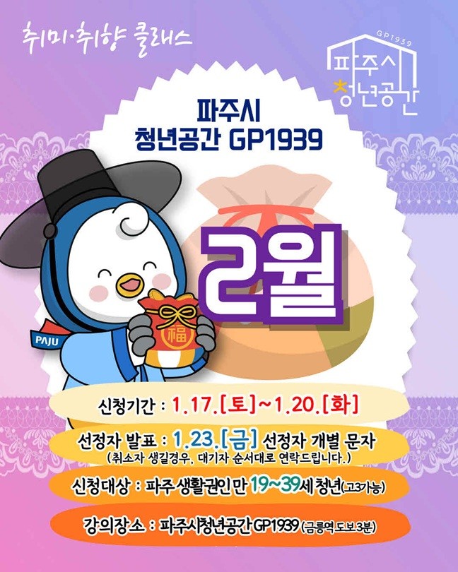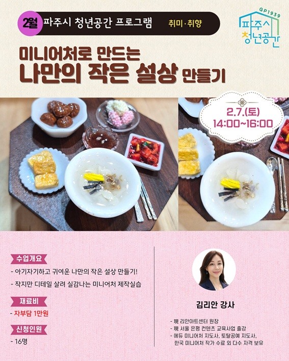김지숙 청년청소년과장은 “청년들이 막연한 계획에 그치지 않고, 일상 속에서 작지만 의미 있는 실천이 이루어질 수 있도록 이번 프로그램을 마련했다”라며, “2월 한 달간의 경험이 청년 각자의 다음 단계를 여는 출발점이 되길 기대한다”라고 말했다.