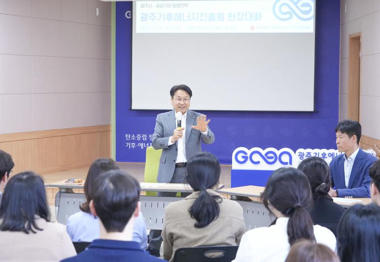 이날 대화에는 강기정 시장을 비롯해 고상연 광주기후에너지진흥원장과 직원 30여 명이 참석했다.
