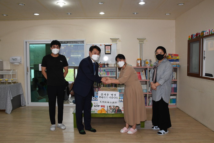 [광주=세계타임즈 손권일 기자] 광주광역시의회 이정환 산업건설위원장은 9월25일 오후 추석명절을 맞아 광주시 수완동에 소재한 '해돋이지역아동센터'를 방문해 위문품을 전달했다.