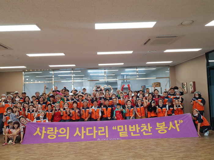 [대전=세계타임즈 이장성 기자] 대전시 SNS 봉사단체 사단법인 사랑의 사다리 밴드(리더 이정제)는 21일 오전9시, 유성구 탑립동에 위치한 코리아종합안전(대표 송철영)에서 대전시 소외계층 300가정에 사랑의 밑반찬 봉사로 우리 사회의 따뜻한 사랑을 전달하였다.