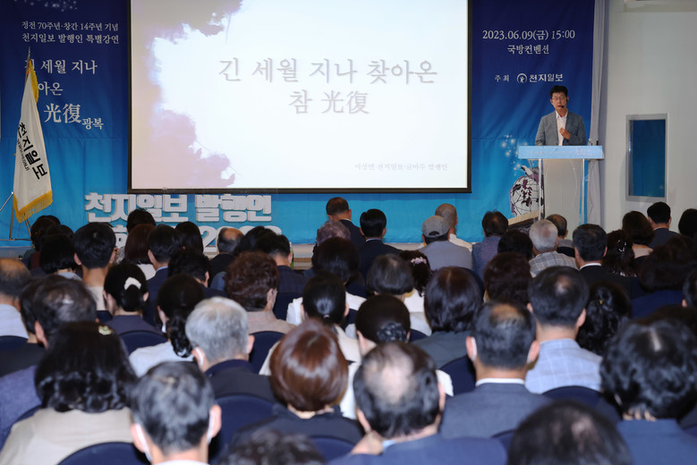 올해로 창간 14주년을 맞은 천지일보(대표이사·발행인 이상면)는 9일 오후 3시~6시 서울 용산 국방컨벤션센터에서 ‘긴 세월 지나 찾아온 참 光復(광복)’이라는 주제로 특별강연을 진행했다.