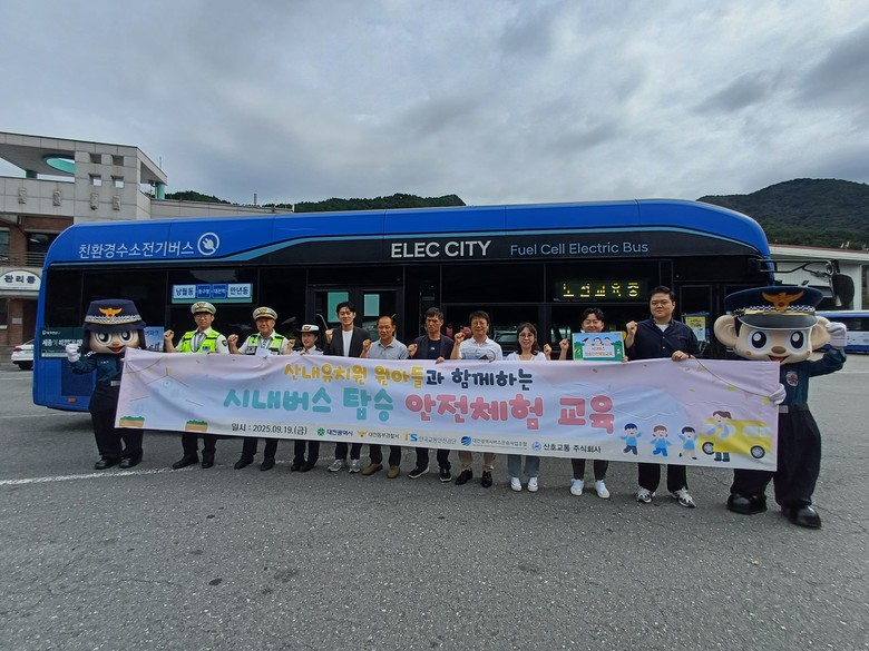 이번 캠페인은 어린이 눈높이에 맞춘 실습형 교통안전 프로그램으로, 원아들이 직접 시내버스를 타고 유치원에서 낭월공영차고지로 이동하면서 ▲안전한 승하차 요령 ▲하차벨 눌러보기 등 생활 속 안전체험을 경험했다. 또 산호교통 운수종사자들은 낭월차고지에서 ‘오늘도 무사GO’ 안전 구호를 외치며 안전운행을 다짐했다.