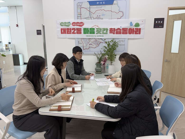 ‘마음곳간 학습동아리’는 대원2동 찾아가는 보건복지팀 팀원 6명으로 구성되어 매월 1회 정기적으로 운영되며, 현장 중심의 실무 역량 강화를 목표로 다양한 주제를 선정해 학습과 토론을 이어갈 예정이다.