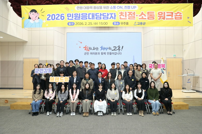 [고흥군 세계타임즈=우덕현 기자] 고흥군(군수 공영민)은 지난 25일 군청 및 읍·면사무소 민원 담당 공무원을 대상으로 민원 서비스 품질 향상과 군민 만족도 제고를 위한 ‘친절·소통 워크숍’을 개최했다고 밝혔다.