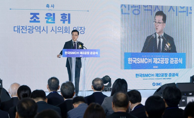 조원휘 의장은 “다국적기업 SMC그룹은 미국 포브스지 ‘World’s Best Employers 2024’에 등재될 만큼 직원들이 근무하기 싶은 좋은 회사로 알려져 있고, 이번 제2공장 준공으로 대전에 50개의 신규 일자리가 창출된 것으로 안다”면서, “국제과학 비즌니스 벨트에 제2공장 입주를 진심으로 환영하며, 앞으로 대전시의회는 세계에서 활약하는 SMC그룹 등 대전과 함께 상생 발전하는 기업하기 좋은 도시 구현을 위해 최선을 다하겠다”고 말했다.