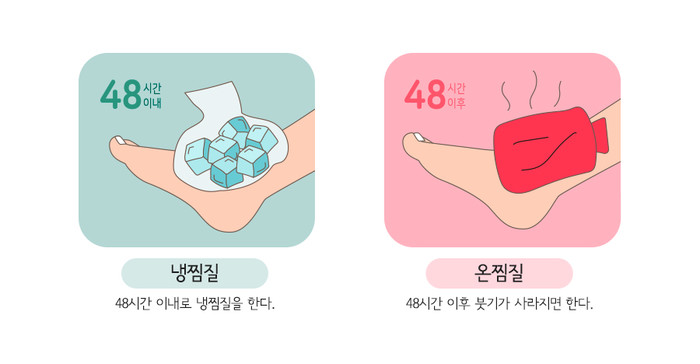 연세건우병원 최홍준 원장(정형외과 족부전문의)은 “냉찜질과 온찜질 모두 필요하다. 그런데 아무 때나 아무거나 해도 된다는 의미는 아니다. 상태를 보고 해야 한다”고 설명했다.