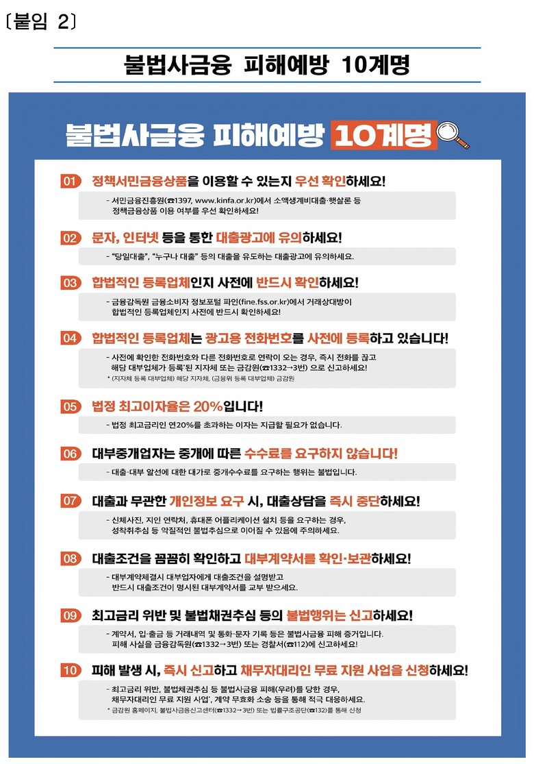 <강화된 대부업법에 따라 고금리 일수대출 등 불법 사금융 엄정 단속>