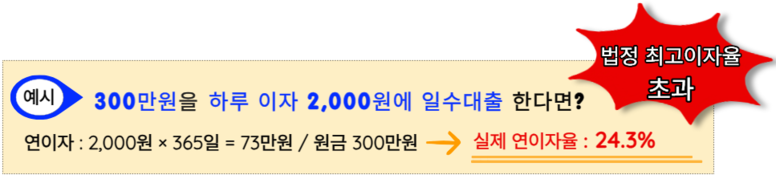 - 초고금리 일수대출 등 법정이자율(20%) 초과 수취, 미등록 대부행위 강력 수사