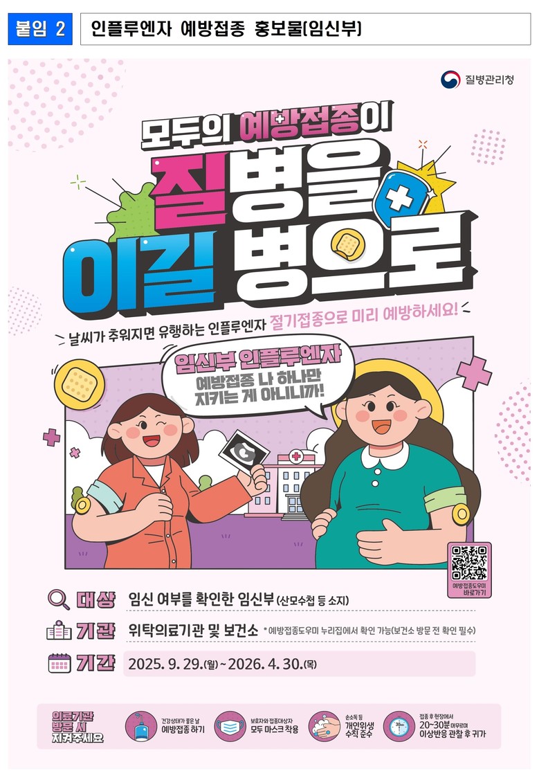 정영미 강원특별자치도 복지보건국장은 “인플루엔자는 매년 유행하는 바이러스가 다르므로 시기에 맞는 백신을 접종하는 것이 효과적이며, 특히 중증화 및 합병증의 위험이 높은 어린이, 임신부, 어르신께서는 인플루엔자 유행 전 예방접종을 꼭 받으시길 당부드린다”라고 전했다.