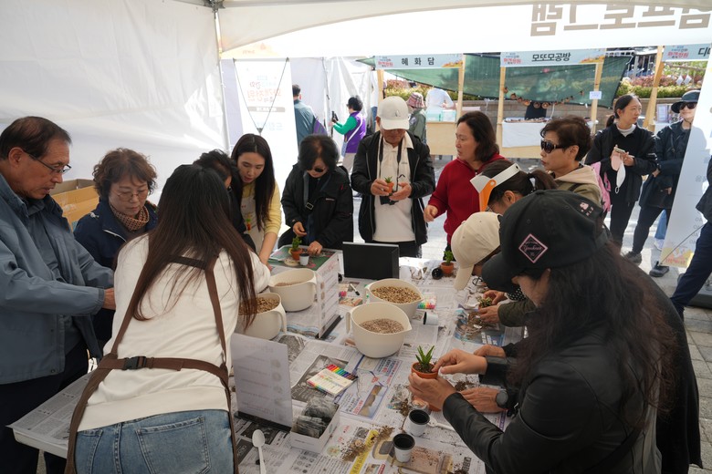 정원 특화 체험으로는 ▲반려 화분 만들기 ▲원고지 키링 만들기 ▲종이 꽃꽂이 ▲드림캐처 만들기 등 남녀노소 누구나 함께 즐길 수 있는 활동이 마련돼 가족 단위 관람객의 발길이 이어졌다.