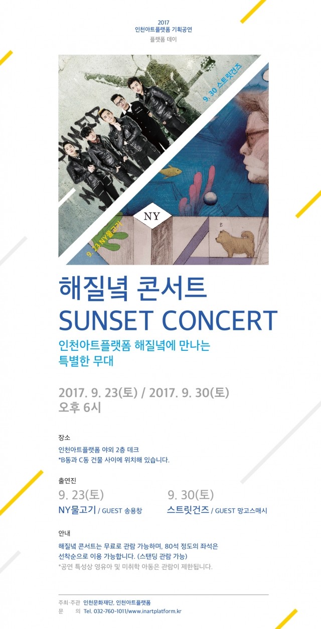 또한 아트플랫폼에서 9월 30일부터 10월 1일까지 아트마켓, 벼룩시장 등 <플랫폼 시장>이 열리고, 9월 30일 저녁 6시에 지는 노을을 바라볼 수 있는 야외 데크에서 선착순 80명과 함께 <해질녁 콘서트>가 진행된다. 10월 7일과 8일 오후 3시에는 <개항호 국악공연>도 진행된다.