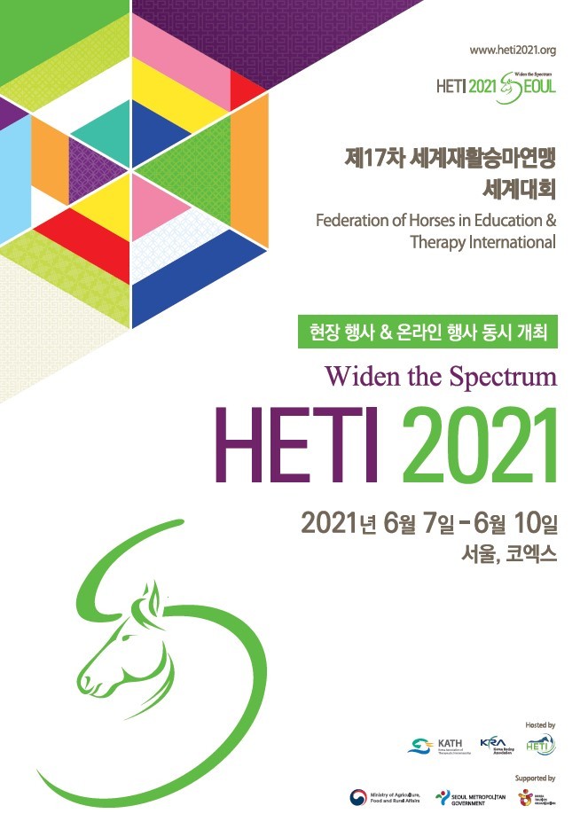 세계재활승마연맹(HETI)은 재활승마 관련 학문적 성과와 경험, 기법 등을 공유하기 위해 1980년에 세워진 국제협력 및 학술교류 단체로 이번 세계대회는 ‘Widen the Spectrum(스펙트럼의 확장)’을 주제로 온·오프라인을 통해 전 세계에서 약 800여명이 참석해 재활승마 관련한 다양한 성과와 의견을 공유하는 장(場)이 마련될 예정이다.