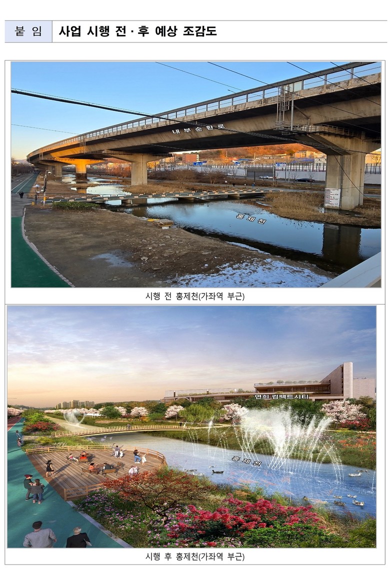 여기에, 고가도로로 인해 환경이 저해됐던 홍제천·묵동천 등을 복원해 수변 여가 공간을 조성하고, 단절된 도시 구조를 회복함으로써 강북 전반의 도시 경관과 정주 환경을 새롭게 정비할 방침이다.