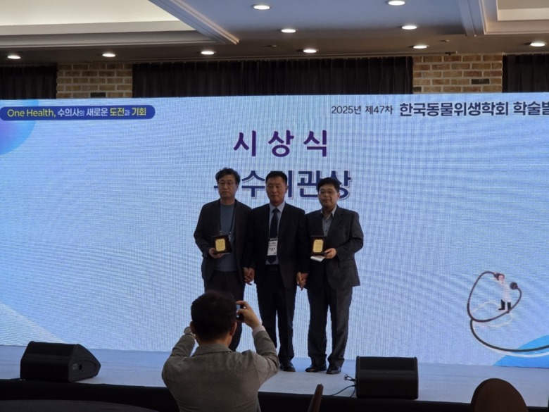 또한 ‘국내 모돈과 멧돼지에서의 마이코박테리움 혈청학적 검출’로 우수발표상과 ‘도축장 출하 염소의 소바이러스성 설사병 바이러스 감염실태 조사’에 관한 논문으로 학술상을 수상하는 쾌거를 이뤘다.