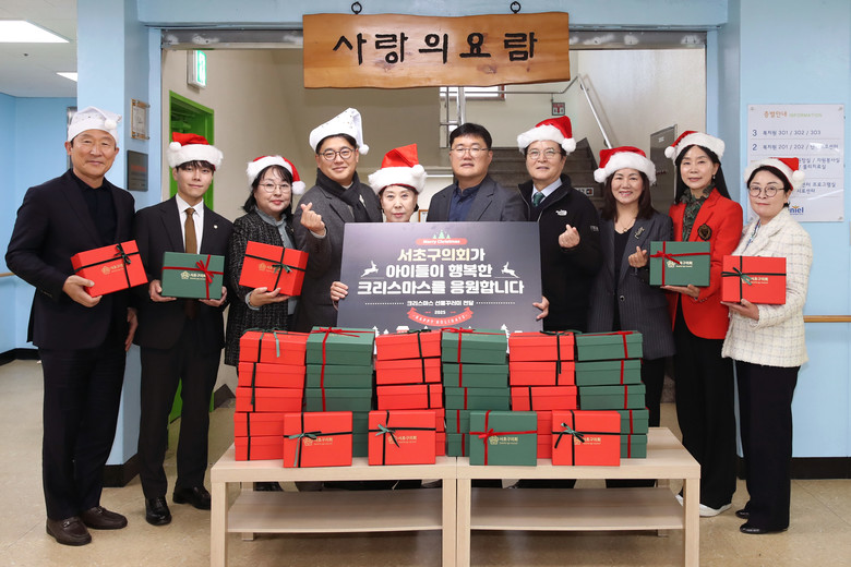 [서초구 세계타임즈=이장성 기자] 서초구의회(의장 고선재)는 17일, 크리스마스를 앞두고 지역 내 아동복지시설에 선물세트를 전달하며 따뜻한 나눔을 실천했다.