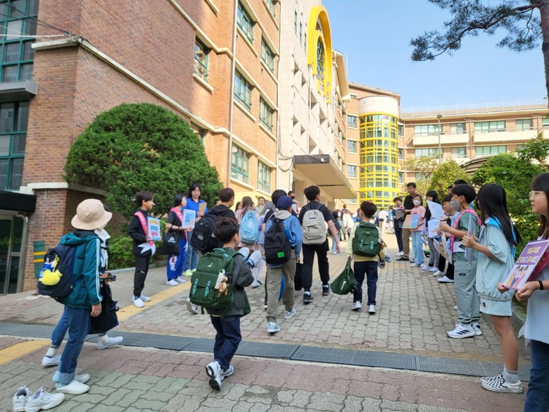 [시흥시 세계타임즈=송민수 기자] 5월 9일(목) 아침, 금모래초등학교(교장 조국제)는 바람직한 학교문화를 조성하고 학교폭력 및 생활지도에 대한 이해로 구성원별 책임을 확인하고 실천을 다짐하기 위해 학생, 학부모, 교직원 모두가 함께 책임규약 캠페인을 실시했다. 이번 캠페인은 8일(수)부터 이틀간 아침 8시 20분부터 50분까지 학생자치회를 중심으로 아침 등굣길에서 실시하였다.