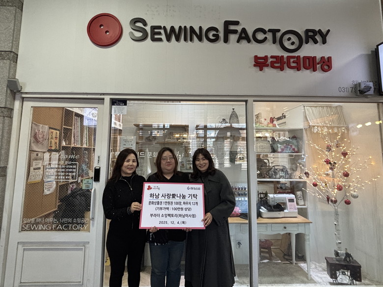 [하남시 세계타임즈=송민수 기자] 하남시 드림스타트는 12월 4일(목) 부라더 소잉팩토리 하남미사점(대표 김혜림)으로부터 문화상품권 100만원과 수제 생리대 파우치 12개를 전달받았다고 밝혔다.