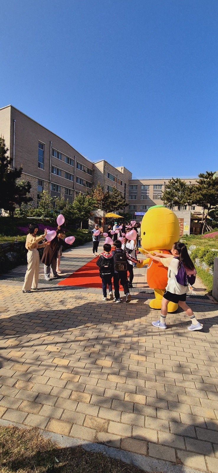 ‘꽃길만 걷자’라는 슬로건 하에 진행된 해당 행사는 교사와 학부모들의 하트풍선 흔들기, 하트메세지 초코파이 나누기, 시흥시 마스코트 해로와 토로가 함께하는 등굣길 맞이 등으로 구성됐다.