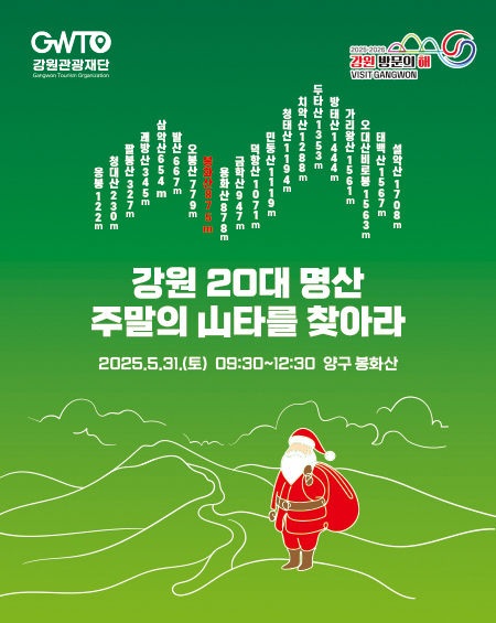 이번 행사의 자세한 내용은 강원관광재단 누리집(www.gwto.or.kr) 공지사항에서 확인할 수 있다.