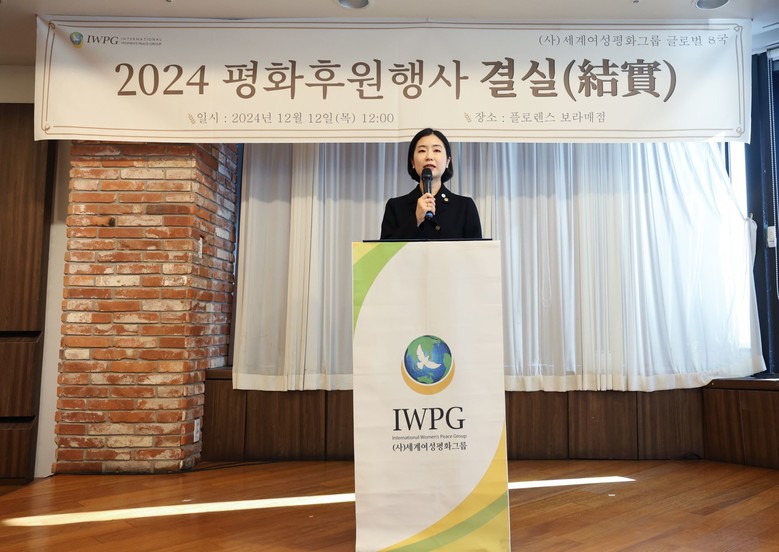 김은희 글로벌국장은 “한 해 동안 IWPG 평화 활동에 동참해 주셔서 감사하다. 여러분의 후원과 헌신은 평화의 씨앗이 돼 지구촌을 살아갈 우리 자녀들과 후대에 소중한 초석이 될 것이다. 이 시간 2024년 함께 걸어온 길을 돌아보고 앞으로 걸어갈 또 하나의 새로운 길을 한마음으로 소망하는 시간이 되면 좋겠다”고 인사말을 했다.